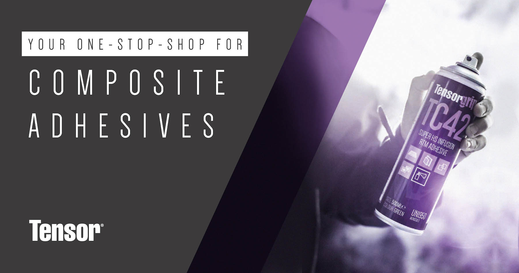 - TC43: We’re continuing our commitment to specialised adhesives engineering with TensorGrip TC43: a revolutionary web spray adhesive suitable for bonding some of the most challenging materials used in the infusion dry lay-up process. A unique product in our Composites range, TensorGrip TC43 web spray comes as our top recommendation when working with Core Foam Kits and heavy mats.