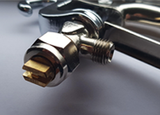 1. Screw the larger hose nut to the gun thread (clockwise) and fully tighten with a spanner. Check that the hose is securely attached.